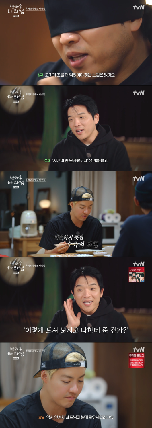 안성재 셰프를 위해 강남과 최현욱이 직접 저녁 식사를 준비했다. 두 사람은 안성재의 입맛을 사로잡기 위해 야심 차게 요리에 도전했고, 공정한 평가를 위해 '흑백요리사'의 시그니처인 안대를 활용한 블라인드 심사가 진행됐다.