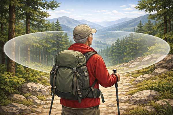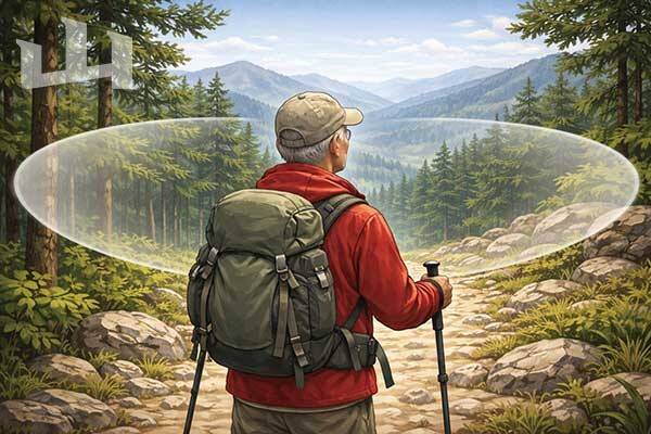 노년층 하이커에게 특히 의미 있는 연구도 있습니다. 2024년 'Scandinavian Journal of Medicine &Science in Sports' 논문에 따르면, 다초점(누진) 렌즈를 착용한 고령 등산객이 단초점 렌즈 착용자보다 발을 헛디딜 확률이 2.3배 높았습니다.