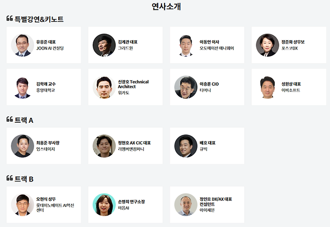이후 오후 병렬 트랙에서는 업스테이지, 롯데이노베이트, 리멤버엔컴퍼니, 마음AI, 큐빅, 아이세븐 등이 참여해 Agent 오케스트레이션, AX 조직 재설계, 현업 적용 사례, 피지컬 AI, AI-Ready 데이터 전략, 온톨로지 기반 AI 에이전트 설계 등 보다 세부적인 의제를 다룬다.