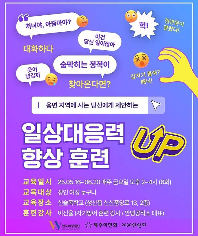 ▲ A poster made by the Jeju Women’s Association’s 2030 Committee for its “Training to Improve Daily Coping Skills.” |