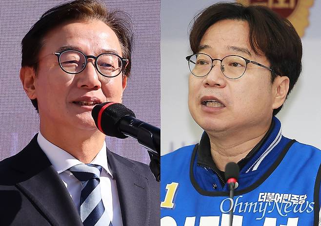 | ▲ 6.3 부산시장 선거 경선에 들어간 더불어민주당 소속 전재수(북구갑) 국회의원과 이재성 전 부산시당 위원장. |