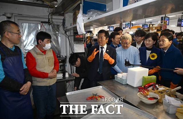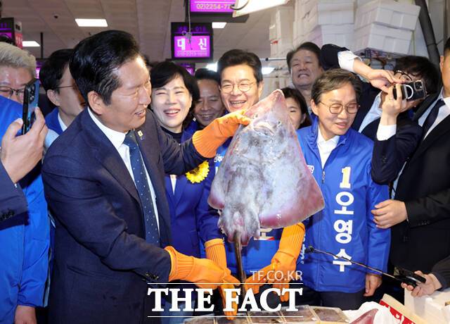 정청래, 서울시장 예비후보들과 노량진수산시장 찾아 민심 청취 [TF사진관]