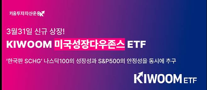 키움투자자산운용은 미국 대형 성장주에 투자하는 'KIWOOM 미국성장다우존스 상장지수펀드(ETF)'를 오는 31일 유가증권시장에 신규 상장한다고 30일 밝혔다.