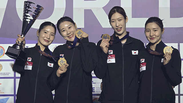 지난 1월 아랍에미리트(UAE) 푸자이라 대회와 지난달 중국 우시 대회에선 준우승했던 여자 에페 대표팀은 올 시즌 처음으로 월드컵 단체전 금메달을 목에 걸었습니다.