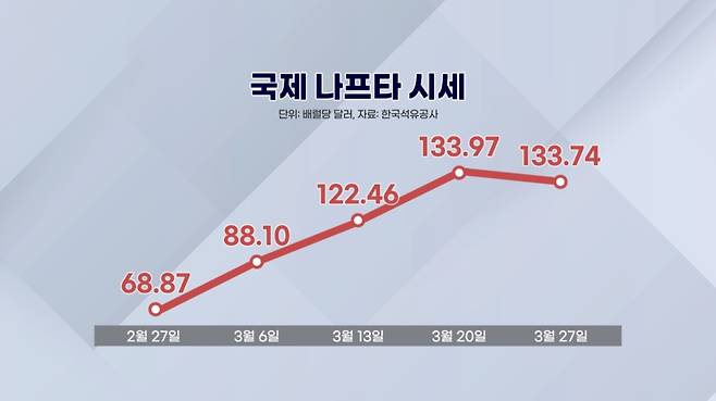전쟁 직전인 지난달 27일과 비교하면 불과 한 달만에 94.2% 폭등한 수치입니다.