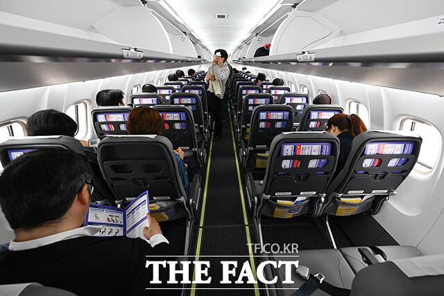 [더팩트ㅣ김포국제공항=남윤호 기자] 30일 오전 서울 강서구 김포국제공항 국내선 활주로에서 여객들이 새로 취항한 섬에어의 김포-사천 노선 운항기에 탑승하고 있다.