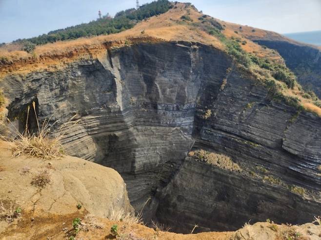 | ▲ 수직의 기암절벽이 아찔하게 펼쳐진 우도봉 아래로 짙푸른 바다가 끊임없이 생명력을 뿜어낸다. |