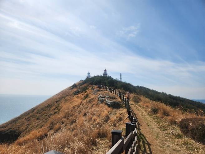 | ▲ 하얀색과 빨간색 등대가 선명한 자태로 반기는 길. 서로에게 분명하고 따뜻한 길잡이가 되어주길 소망하며 걷는다. |