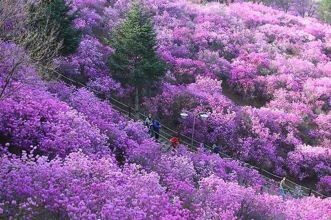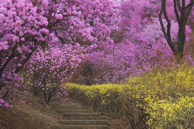 과거 나무가 드물던 산에 시민들이 하나둘 옮겨 심기 시작한 묘목들. 그 나무들이 30년을 지나 약 3만㎡ 부지를 채운 7만여 그루의 진달래 동산으로 자라났다. 사람이 심은 시간이 봄으로 피어나는 순간, 이곳의 봄은 단순한 풍경을 넘어 하나의 이야기가 된다.