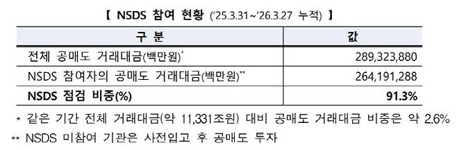 또 NSDS 미참여 기관에 대해서도 별도 점검을 확대해 공매도 사각지대를 줄인다는 계획이다.
