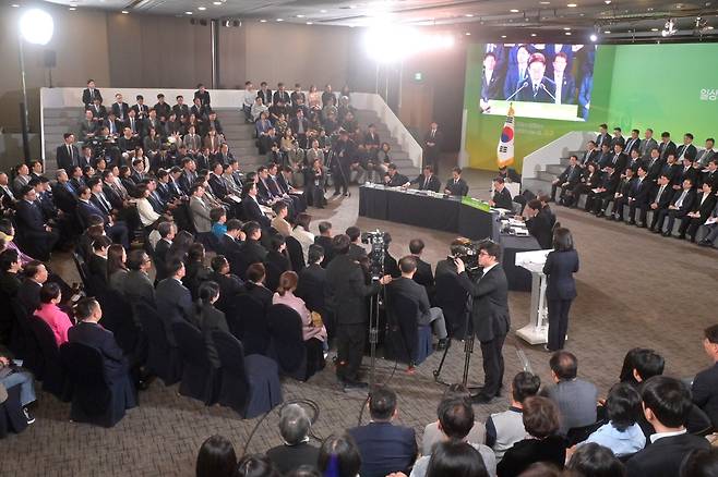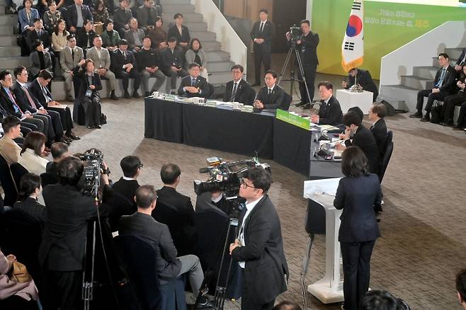 이 대통령은 “제주와 육지부를 해저터널로 연결하자는 의견이 있다. 찬성하는 지역도 있는데, 제주도민의 생각이 궁금하다”며 참석자들을 상대로 찬반 의사를 물었다.