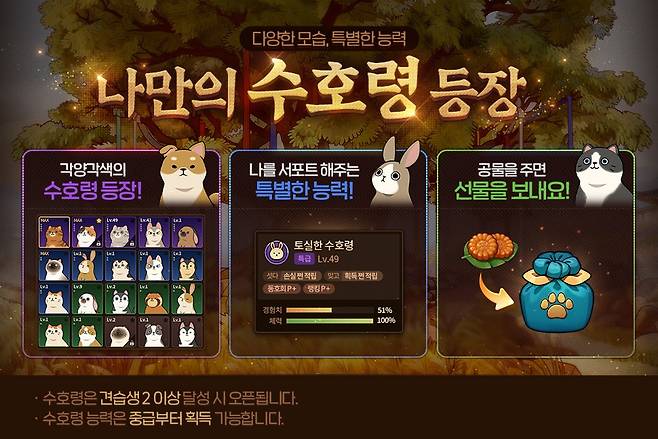 이번에 새롭게 도입된 수호령은 다양한 혜택을 제공하는 일종의 '펫'과 같은 동반자 콘텐츠다.
