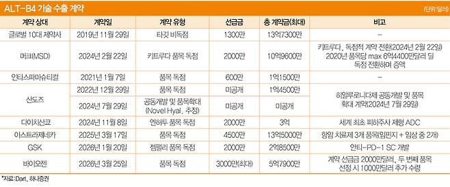 최근에는 굵직한 기술이전 계약을 성사하며 분위기 반전 계기를 만들었다. 알테오젠은 글로벌 제약사 바이오젠과 ALT-B4 기반 바이오의약품 2개 품목의 SC 제형 개발과 상업화를 위한 독점 기술이전 계약을 체결했다고 지난 3월 25일 공시했다. 주식 시장에서 곧바로 반응이 나타났다. 공시 다음 날인 3월 26일 알테오젠 주가는 장 시작과 함께 치솟으며 시가총액 4위에서 2위로 단숨에 점프했다.