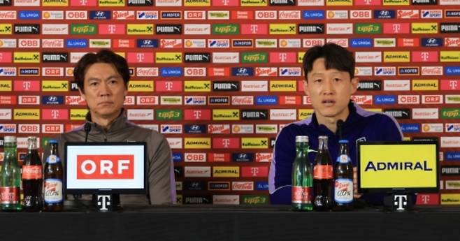 오스트리아전 하루 앞둔 30일 에른스트 하펠 경기장에서 열린 기자회견 때 나타난 홍 감독은 "지난해 10월에 브라질전(0-5 패) 끝나고 월드컵 본선에서 이런 상황 어떻게 극복하는지 시뮬레이션을 했다. 선수들이 슬기롭게 잘 이겨냈다"며 브라질전 대패 뒤 파라과이를 2-0으로 잡고 웃은 기억을 떠올렸다.