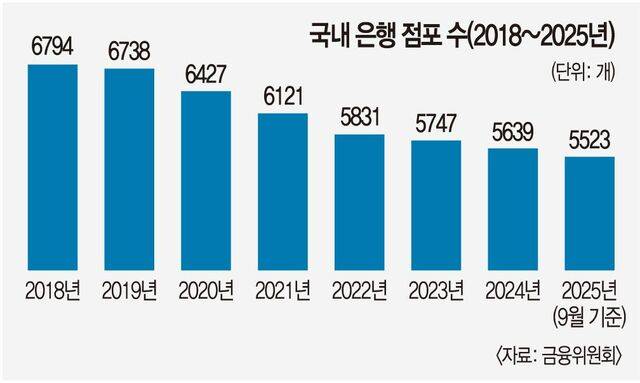 주요 상권과 주택가 곳곳에서 쉽게 찾아볼 수 있었던 은행 점포가 줄어들고 있다. 임대료·인건비 등 제반 비용이 상승하는 추세에 모바일 금융이 보편화하면서 점포를 유지할 실익이 떨어지면서다. 변화는 몇 년에 걸쳐 전국적으로 나타나고 있는데, 지방에서도 이런 흐름이 가속하는 분위기다. 고령층을 비롯한 디지털 취약 계층의 불편이 커진 셈이다. 금융 당국은 이런 현상이 공공 인프라를 약화한다는 판단하에 점포 폐쇄 절차 강화 작업에 나섰다. 금융 당국에 따르면 지난해 9월 말 기준 국내 은행의 오프라인 점포 수는 5523개다. 2018년 말(6794개)보다 1271개 감소했다. 2020년 이후 코로나19 팬데믹을 계기로 비대면 금융 이용량이 급증하면서 점포 감소 속도가 눈에 띄게 빨라졌고, 창구 방문 대신 모바일을 이용하는 소비 패턴이 자리 잡았다.
