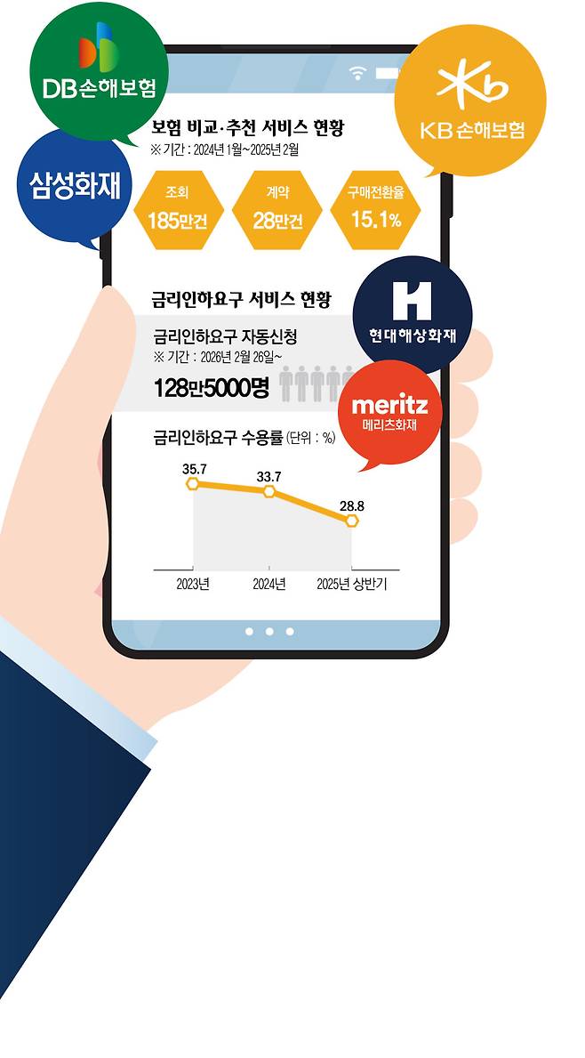 대출 시장에서도 유사한 흐름이 나타나고 있다. ‘금리인하요구권 자동신청 서비스’는 현재 70개 금융사를 대상으로 시행 중이며, 상반기 중 114개사로 확대될 예정이다. 사전 등록 인원만 128만5000명에 달할 만큼 소비자의 관심은 뜨겁다.