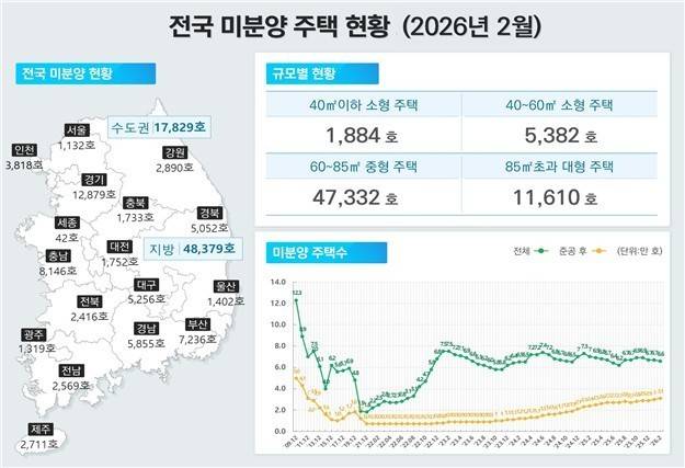 오늘(31일) 국토교통부가 발표한 주택통계에 따르면 2월 말 기준 전국 미분양 주택은 한 달 전보다 0.6%(368가구) 감소한 6만6천208가구로 집계됐습니다.