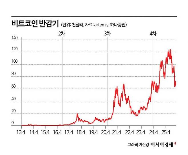 당시 비트코인 가격이 하락한 이유는 유동성이 축소했기 때문이다. 2024년 미국 증권거래위원회(SEC)가 비트코인을 기초자산으로 한 현물 상장지수펀드(ETF) 거래를 승인한 이후, ETF 자금 유입으로 비트코인 가격이 상승했다. 비트코인 자체 특성인 반감기가 2024년 4월 네 번째 시기를 맞이해 공급 부족을 심화시키기도 했다. 반감기란 비트코인이 공급 상한선을 강제해 인플레이션을 제어하는 수단이다. 비트코인은 21만개 블록(일정 시간 동안 발생한 거래를 묶은 장부)이 생성될 때마다 채굴 보상이 절반으로 줄어들도록 설계됐다. 단계마다 블록 보상은 급격히 감소해 공급 속도가 둔화한다.