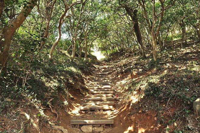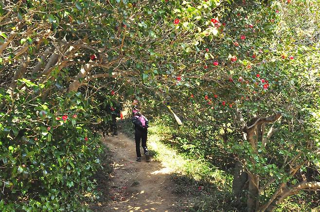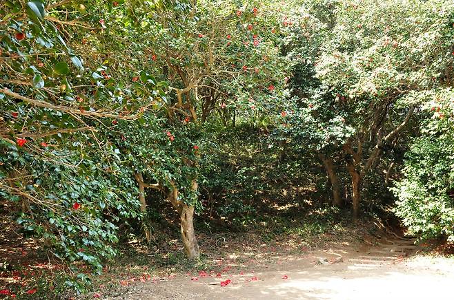 | ▲ 햇빛이 잘 들지 않을 정도로 울창한 동백숲 |