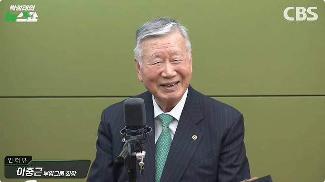 ◇ 박성태> 오늘 뉴스쇼 인터뷰는 화제의 기업인입니다. 사업을 일구고 키운 부분도 있지만 사업도 사업이지만 이 부분에 더 관심을 많이 받았고 화제가 된 분입니다. 직원들에게 아이 1명 낳으면 그냥 1억 원, 둘 낳으면 2억 원. 직원뿐만 아니라 고향 주민, 학교 동창, 군대 전우, 동기, 그냥 막 쏴주신 분입니다. 부영그룹 회장이고 대한노인회장 그리고 최근에는 한국유엔협회 회장인 부영의 이중근 회장 모시고 인생 얘기를 들어보겠습니다. 안녕하세요.
