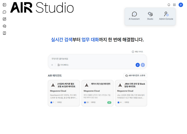 AI·클라우드 선도 기업 메가존클라우드(대표 염동훈)가 AI 구축부터 실행, 통제까지 전 과정을 통합 관리할 수 있도록 설계된 엔터프라이즈 AI OS ‘AIR Studio V2’를 출시했다.