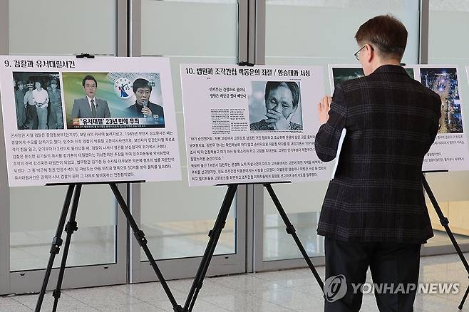 (서울=연합뉴스) 류효림 기자 = 31일 서울 용산구 백범김구기념관에서 열린 '반헌번행위자열전' 출간 기자회견에서 참석자들이 관련 자료를 살펴보고 있다. 2026.3.31