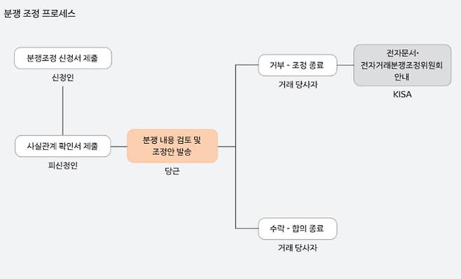 조정안은 양측이 수락할 경우 환불, 비용 분담, 물품 반송 등의 방식으로 합의가 이뤄지며 절차가 종료된다. 반면 한쪽이라도 거부하거나 자료 제출이 이뤄지지 않을 경우 조정은 종료되며, 필요 시 한국인터넷진흥원(KISA)의 전자거래 분쟁조정위원회로 연계된다.
