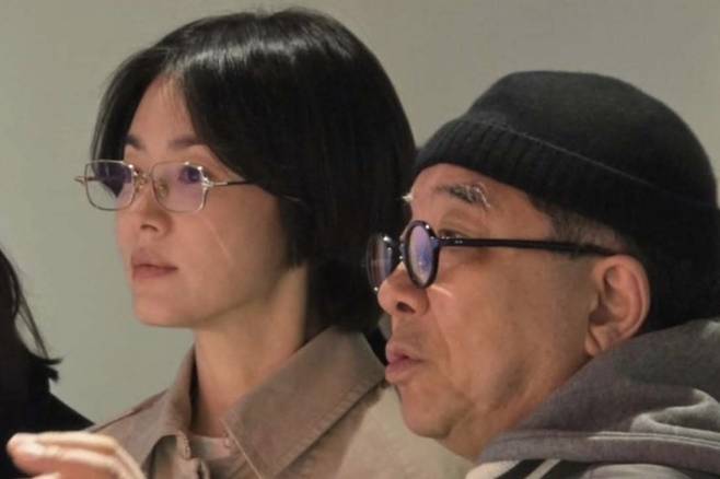 송혜교, 대선배 男 가수와 전시장에서 포착...안경 끼고 '털털한' 옷차림
