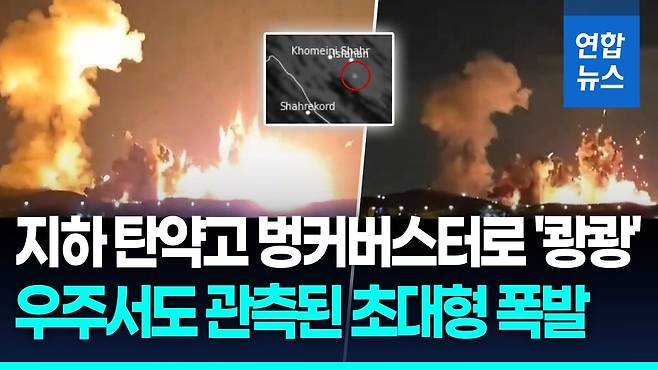 (서울=연합뉴스) 미국이 이란 중부 도시 이스파한의 대형 탄약고를 벙커버스터 폭탄으로 타격했습니다. 도널드 트럼프 미국 대통령은 폭발 장면이 담긴 타격 영상을 직접 공개했습니다.