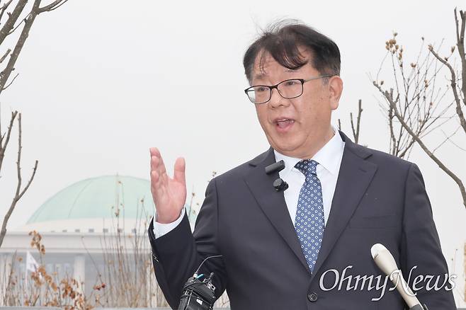 | ▲ 정청래 대표의 법률특별보좌관으로 임명됐다가 이화영 전 경기도 평화부지사를 변호한 이력이 논란이 돼 사퇴한 서민석 변호사가 지난 2월 13일 서울 여의도 국회 정문 앞에서 기자회견 열고 직접 해명하고 있다. |