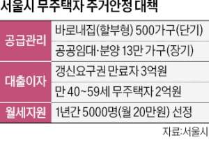 서울시가 무주택 서민의 주거 안정을 위해 이르면 연말 임대주택 500가구 입주자를 모집한다. 계약갱신요구권 만료를 앞둔 세입자에게 최대 3억원을 저리로 융자하는 등 금융 지원도 강화한다.