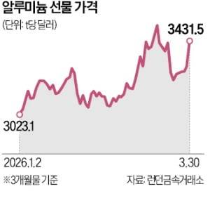 영국 런던금속거래소(LME)에 따르면 30일(현지시간) 알루미늄 3개월물 선물 가격은 전 거래일보다 5% 이상 오른 t당 3431.5달러를 나타냈다. 2022년 4월 이후 최고치다. 중동의 주요 알루미늄 생산업체가 이란의 공격을 받아 알루미늄 공급 차질이 빚어질 것이란 시장의 우려가 커진 영향이라는 평가가 나온다.
