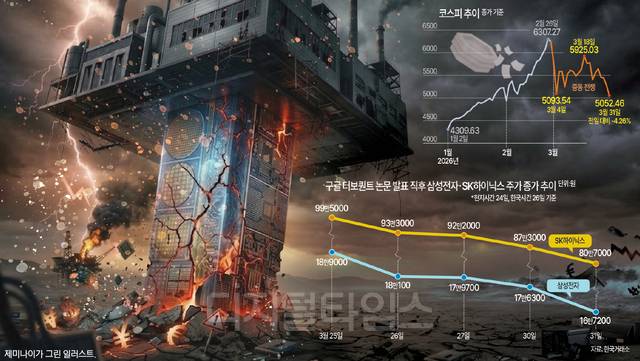 중동발 충격파에 구글의 ‘터보퀀트’ 논란까지 이어지면서 코스피 시가총액의 40% 이상을 책임지는 ‘삼전닉스’(삼성전자·SK하이닉스)의 주가까지 흔들리기 시작했다. 11개월 내내 두 자릿수의 상승률을 이어갔던 D램 가격도 결국 보합세로 돌아섰다.