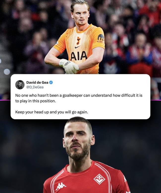 영국 '트리발 풋볼'은 29일(이하 한국시간) "데 헤아가 토트넘 골키퍼 킨스키에게 연락한 이유에 대해 설명했다"라고 보도했다.