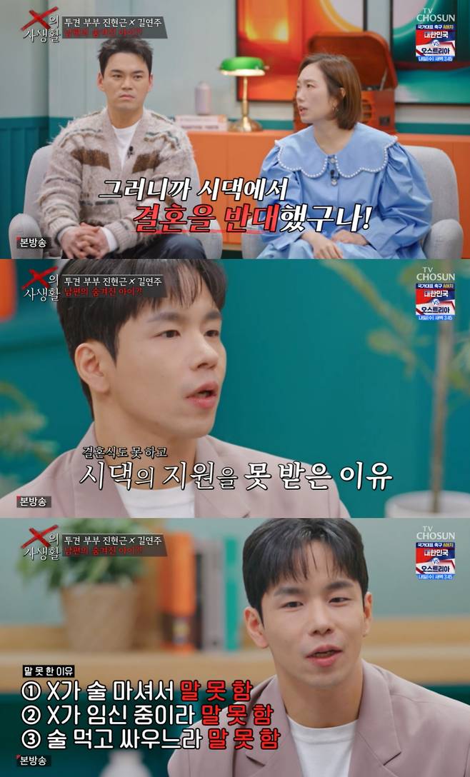 정경미는 "그러니 시댁이 결혼을 반대했구나"라고 상황을 이해했고, 진현근은 "그래서 부모님도 그런 일이 있으니 (지원을 못 받았다)"고 인정했다.