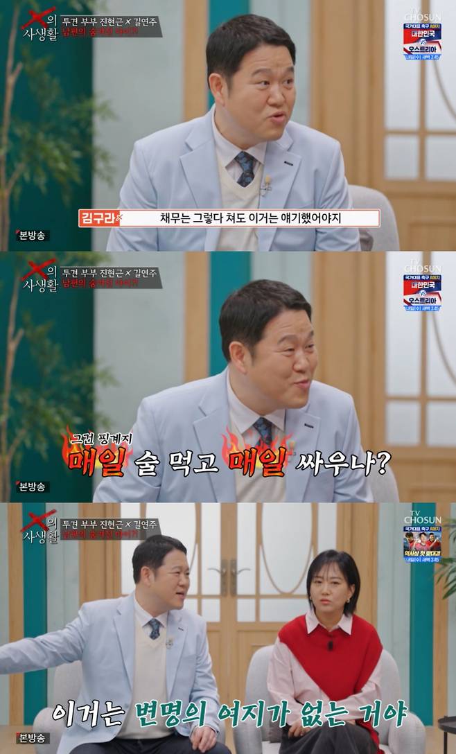 이를 들은 김구라는 "매일 싸우고 매일 술 먹냐. 이건 변명의 여지가 없다"고 단호히 답했다.