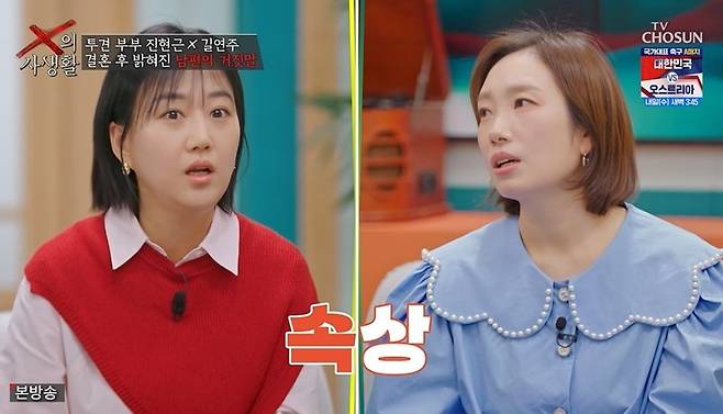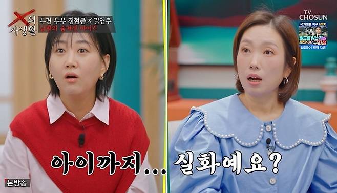 하지만 더 큰 문제가 기다리고 있었다. 길연주는 "법원 서류 떼다가 알게 됐는데, X가 총각인 줄 알았다"라고 고백해 충격을 안겼다. 길연주는 "100번 양보해서 한 번 갔다 온 거? 그렇다 치자. 근데 아이까지 있으니"라고 했고, MC들은 입을 다물지 못했다. 장윤정은 화들짝 놀라며 "실화냐"고 했고, 천록담은 "뭐라고요?"라며 헛웃음을 지었다.