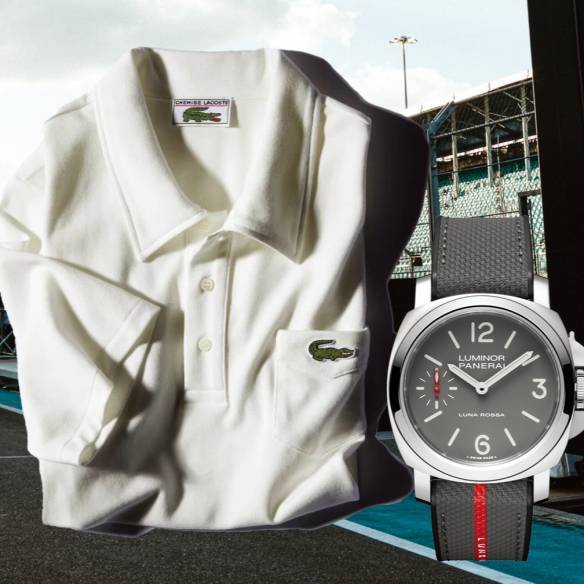 스위스 요트팀 알링기를 후원하는 튜더, 파네라이의 루나 로사 프라다 피렐리팀 협업 컬렉션, 루미노르 루나 로사 워치, 프라다의 아메리카스 컵 스니커즈.