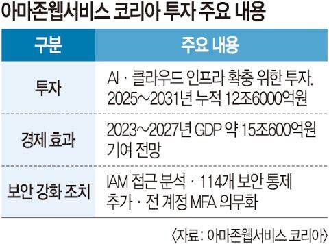 세계 1위 클라우드(가상 서버) 기업인 아마존웹서비스(AWS)가 2031년까지 한국에 7조원을 추가로 투자한다. AWS는 이와 함께 생성형 인공지능(AI)을 보안 사고 조사에 전면 배치할 계획이다. 급증하는 AI 인프라 수요를 선점하는 동시에 ‘AWS는 신뢰할 수 있다’는 메시지를 시장에 던지려 하는 것으로 보인다.
