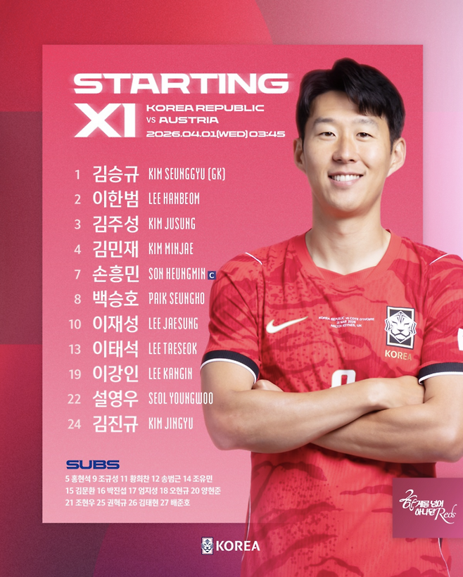 홍명보 감독이 이끄는 한국 대표팀은 1일 오전 3시 45분 오스트리아 빈의 에른스트 하펠 스타디온에서 오스트리아를 상대로 3월 A매치 평가전 2번째 경기를 치른다.