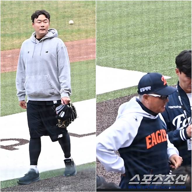 김현수는 한화 양승관, 김민호 코치에게 먼저 인사를 건넨 뒤 타격 훈련 중이던 김태연·채은성과도 반갑게 악수하며 안부를 주고받았다.