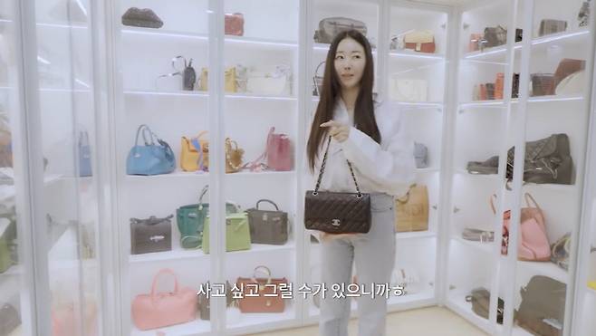 드레스룸에는 명품백들이 한가득 진열돼 있었다. 김사랑은 "예전에 샀던 거다. 여자들의 로망이지 않냐"며 투명한 진열장에 놓여진 명품백들을 자랑했다. 제작진은 "더스트백에 보관하지 않냐"고 물었고 김사랑은 "다 보여야 한다. 더스트백에 넣어서 안 보이면 사고 싶어질 수 있다"고 밝혀 웃음을 안겼다.