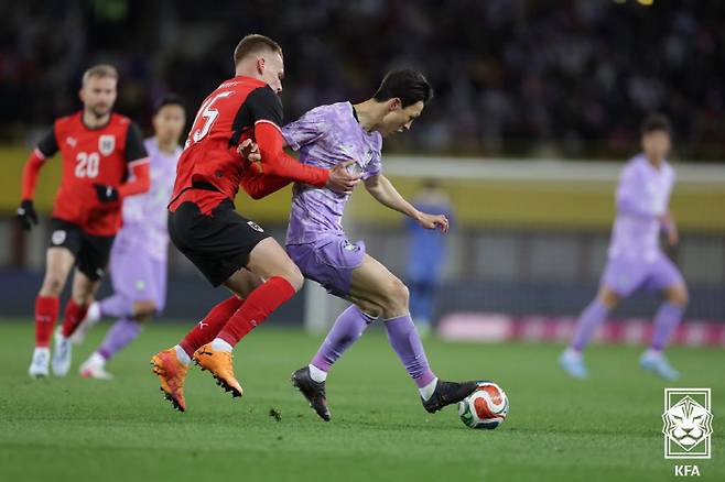 한국은 이날 과감한 압박으로 오스트리아의 게겐 프레싱에 맞섰는데, 이재성이 선봉에 섰다.
