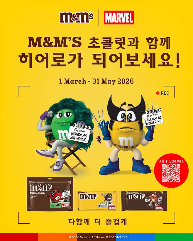 이번 협업은 “함께할 더 때 즐겁다(It’s More Fun Together)”는 메시지를 바탕으로, 마블의 아이코닉한 스토리텔링과 앰엔엠즈의 유쾌한 매력을 결합한 디지털 콘텐츠와 경품 등을 선보일 예정이며, 엠앤엠즈 마스코트와 마블 캐릭터를 결합한 디자인으로 재미와 맛, 팬덤의 요소를 함께 담아낸 7종의 한정판 패키지를 선보인다.