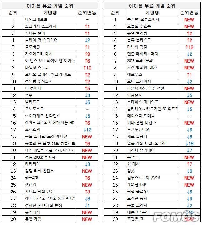 또, 컴투스의 대표 야구 게임인 '컴투스프로야구V26'도 새롭게 차트에 올라 24위를 차지했다.