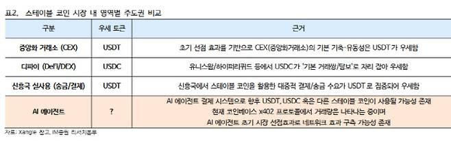 그는 “이러한 환경에서는 규제 친화적이고 온체인 인프라와의 통합성이 높은 USDC가 상대적으로 유리한 위치를 확보할 여지가 있다”며 “다만 현재까지 코인베이스가 주도하는 AI 결제 프로토콜인 x402 기반 거래량이 의미 있는 수준으로 확대됐다고 보기는 어려운 만큼, 이러한 변화가 실제 수요로 이어질지는 추가적인 확인이 필요하다”고 했다.