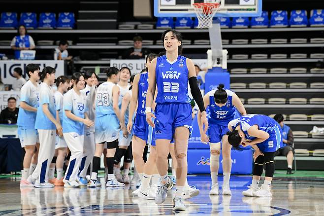 그나마 이 기세로 올 시즌을 버티던 우리은행은 김단비의 에이징 커브에 더해 기대했던 아시아쿼터 선수 세키 나나미와 한엄지의 부상 이탈에 이어 이명관, 이다연, 이민지가 줄줄이 부상으로 전력에서 빠지면서 막판 6연패, 결국 4위 턱걸이에 사활을 거는 힘든 상황까지 내몰린 것이다.