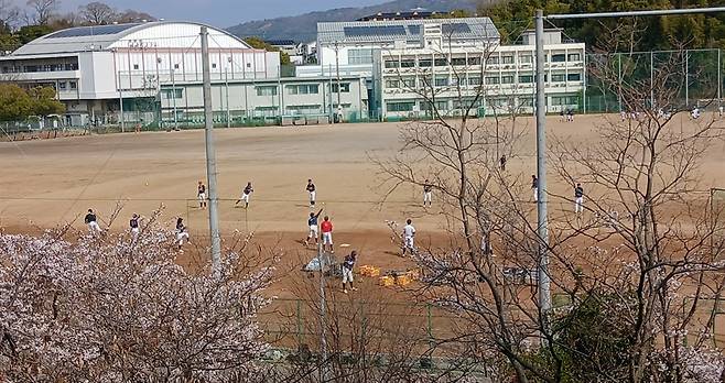 | ▲ 오사카대학 도요나카 캠퍼스에서 고교 야구선수들이 연습을 하고 있다. |