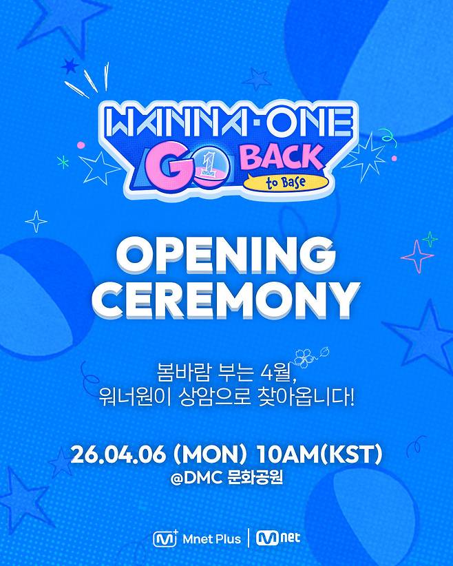 1일 Mnet 공식 SNS(트위터)를 통해 공개된 내용에 따르면 ‘WANNA ONE GO : Back to Base’ 오프닝 세리머니가 오는 4월 6일 오전 10시 서울 상암동 DMC 문화공원에서 개최된다. 이번 행사는 별도의 사전 신청 없이 누구나 자유롭게 참여할 수 있는 오픈형 이벤트로 진행된다.