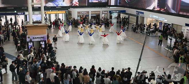 (서울=뉴스1) 이종수 인턴기자 = 1일 오후 서울역에서 문화체육관광부 ‘문화가 있는 날’ 확대 기념행사가 열리고 있다. 기존 월 1회 운영되던 ‘문화가 있는 날’은 매주로 확대됐다. 2026.4.1/뉴스1
